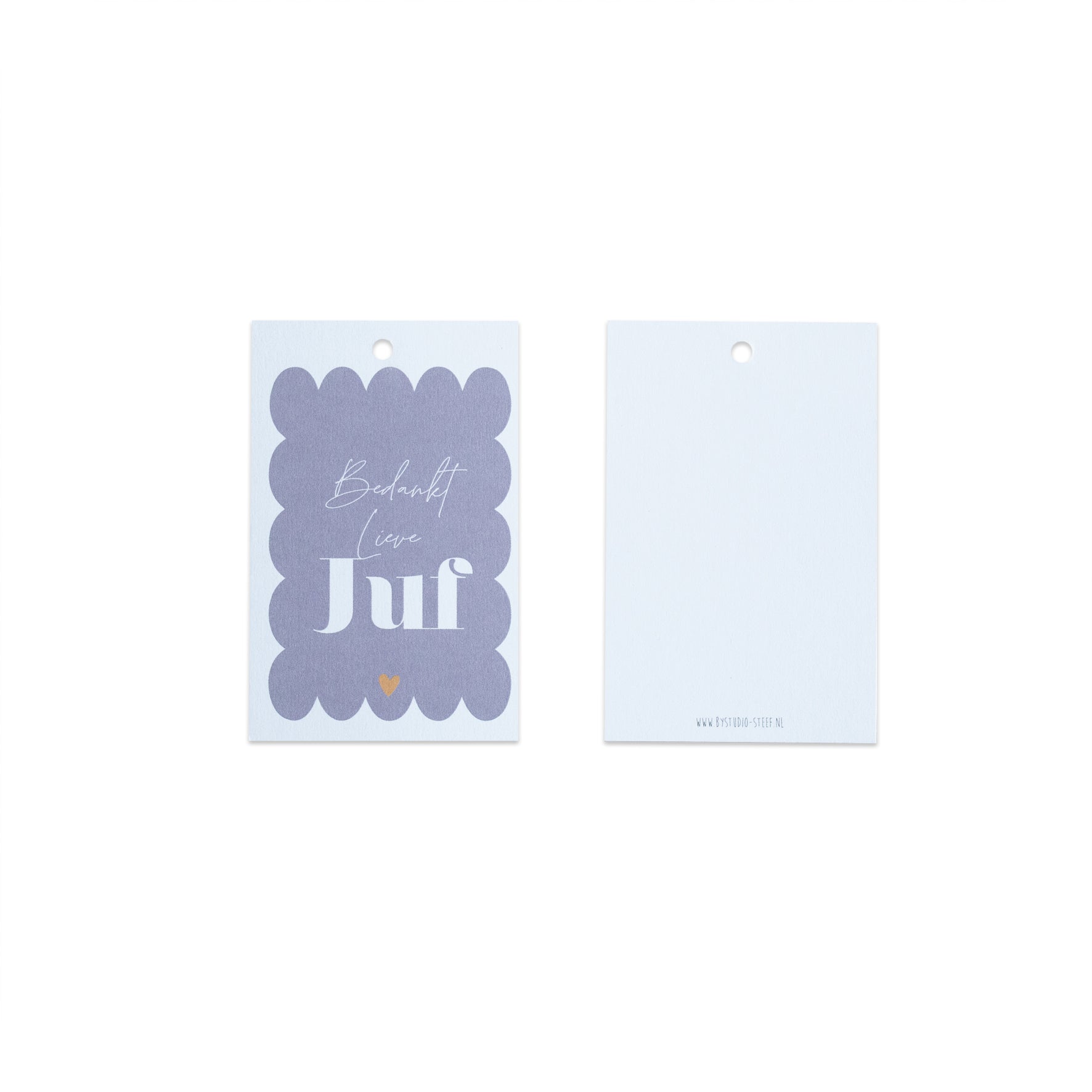 Laat jouw waardering voor de allerliefste juf zien met dit schattige kadolabel “Bedankt lieve juf”.