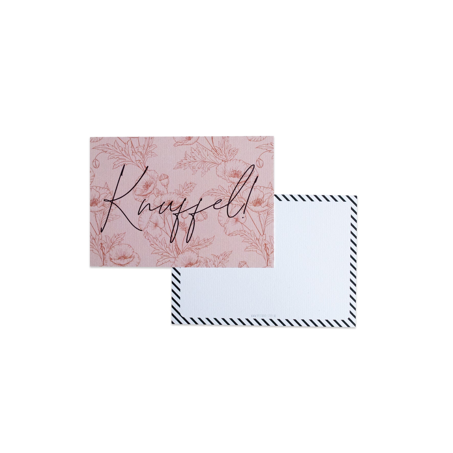 Een knuffel op papier kan soms meer zeggen dan duizend woorden. Deze kaart met de handgeschreven tekst ‘Knuffel’ brengt warmte, aandacht en een glimlach op elk moment van de dag.