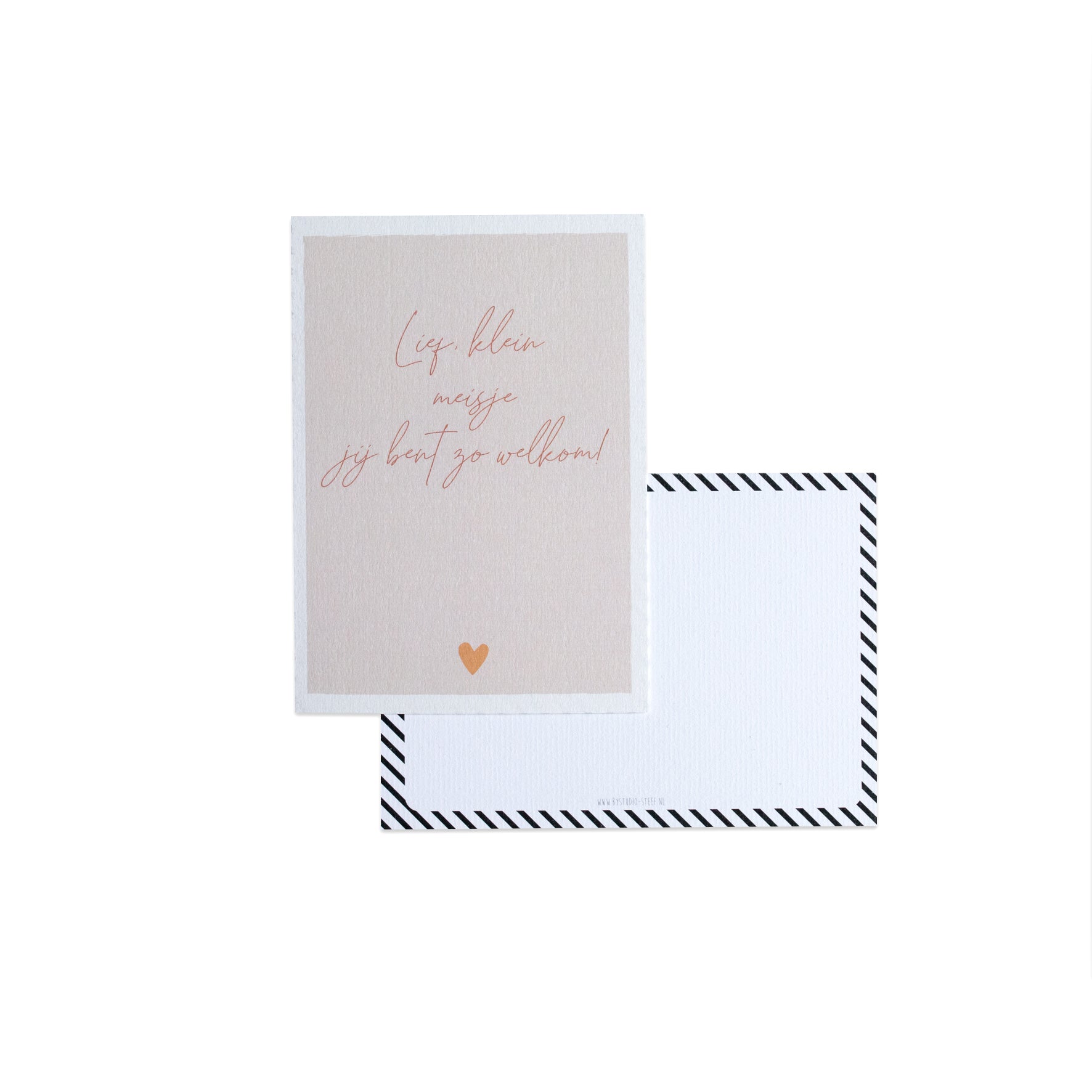Welkom, kleine meid! Vier de geboorte van een dochter met deze liefdevolle ansichtkaart met de tekst “Lief, kleine meisje jij bent zo welkom!”. Het zachte en warme ontwerp straalt liefde, vreugde en warmte uit – perfect om de komst van een dochter op een bijzondere manier te vieren.